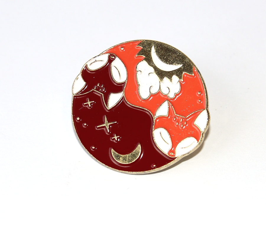 Kulatá brož se spícími liškami, které jsou pod měsíční oblohou velice roztomilé ♥ Znázorňují rovnováhu, která je velice potřebná pro naši spokojenost v tomto životě :)