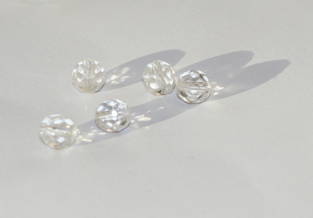 Joyka Křištálové korálky 1,3 cm nebo 0,7 cm - Skleněné, Broušené, Česká výroba, Starožitnost z lustrů, Odráží sluneční paprsky v duhových barvách 3598